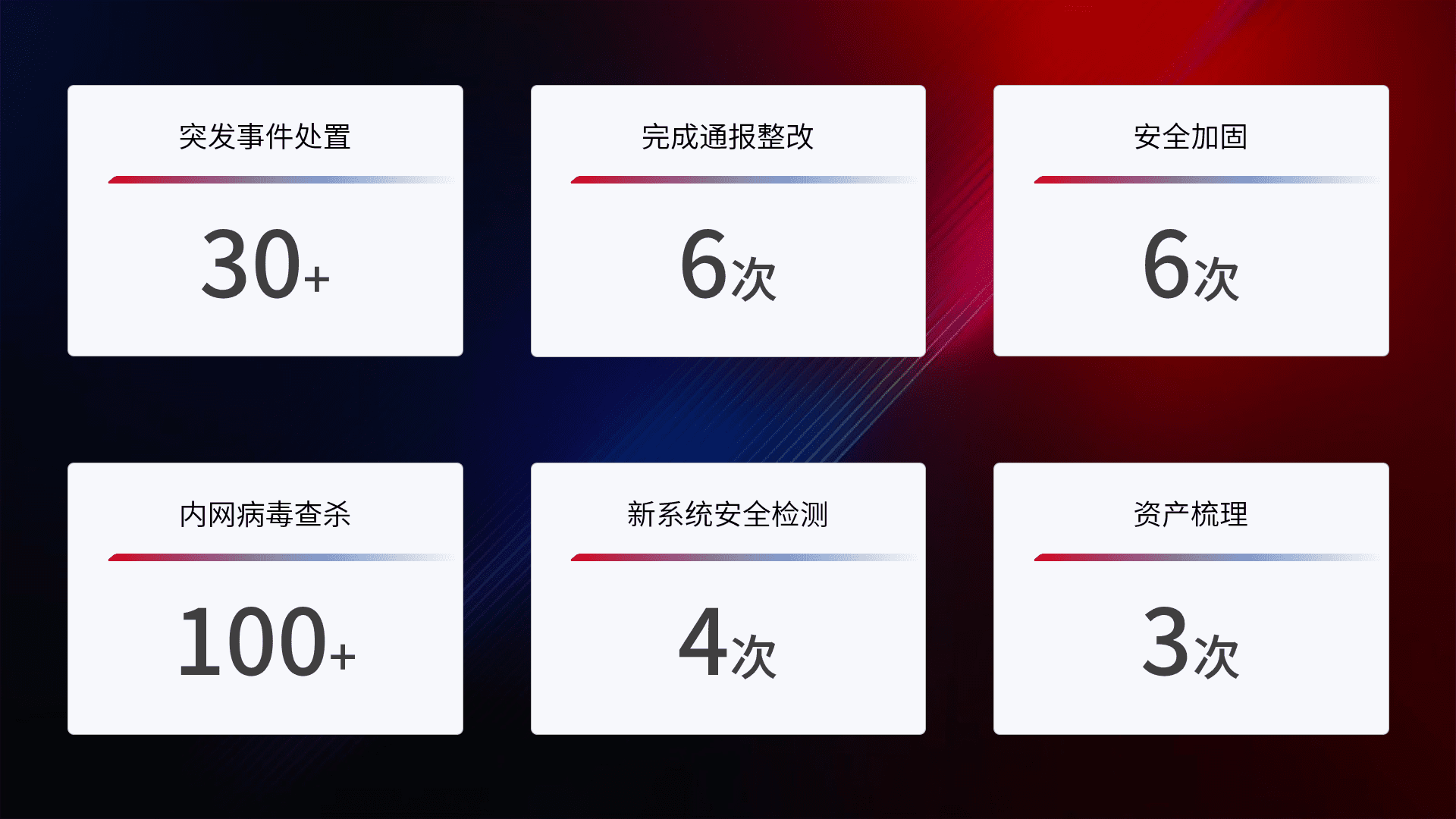 网络安全加固与风险管理:通过技术加固手段,,,如加强区域隔离,,缩减攻击内网横向移动的范围;优化现有网络安全管理制度,,降低网络威胁暴露面,,,减少被黑客攻击的可能性。。。